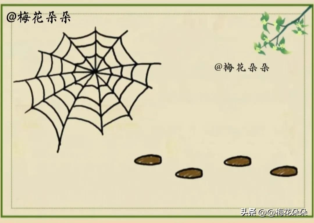 图片中有一张的蜘蛛网,和几个脚的印记。