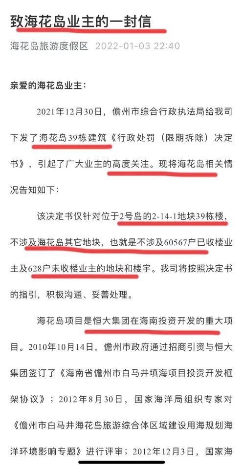 1、恒大集团发布《致海花岛业主的一封信》,通过信件的形式进行了回应。并在信件中承认了39栋楼需要拆除这个事实,同时,也暗示这39栋楼曾经取得过相关审批手续。