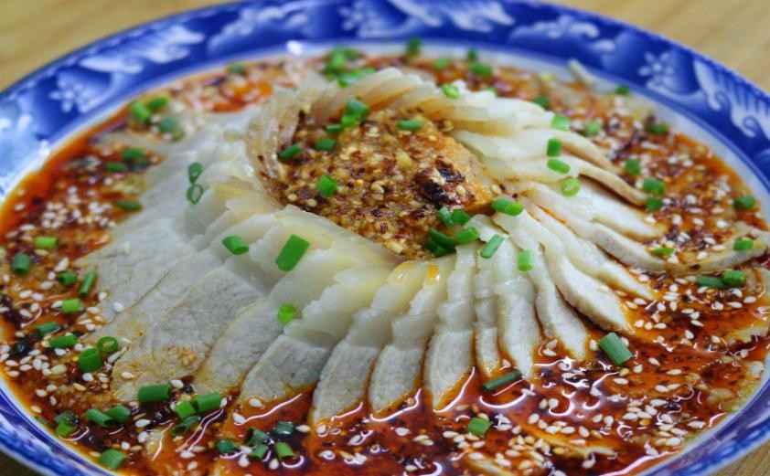 做法是把猪皮刮去油脂,切成小细条,慢火炖煮,然后放入模具中,冷却后成冻,吃的时候切成小块,调一个蒜泥汁。