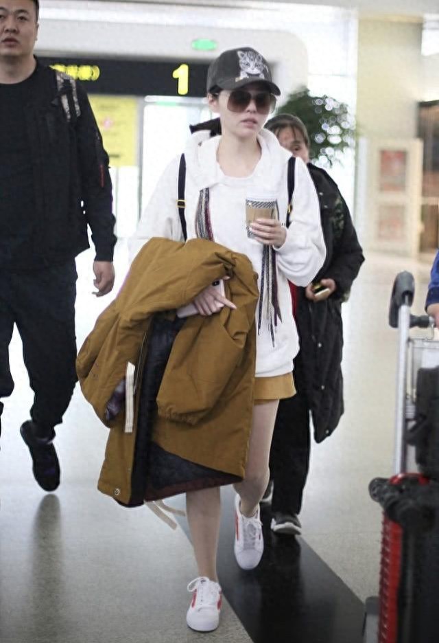 张靓颖穿卫衣走机场,不穿长裤玩“下衣失踪”,35岁皮肤白到发亮