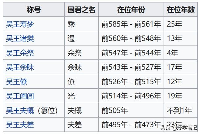 下图所表春秋后期历史上知名的吴国国君:(从寿梦元年(前586)起吴国才有准确的纪年。)