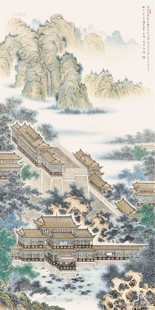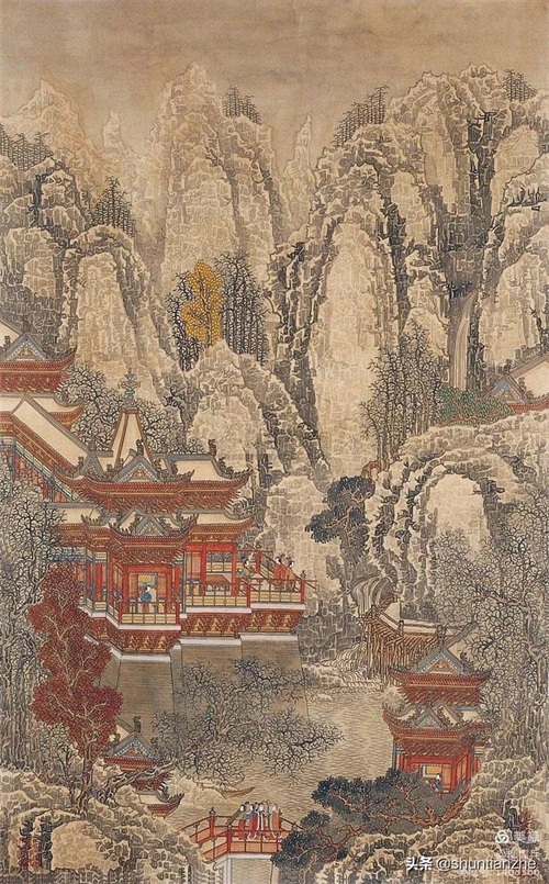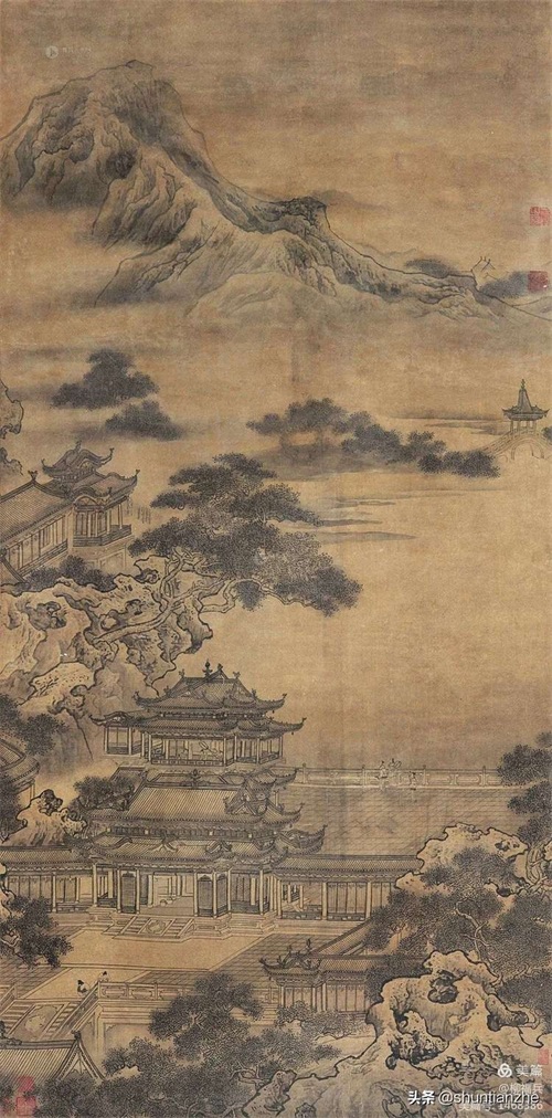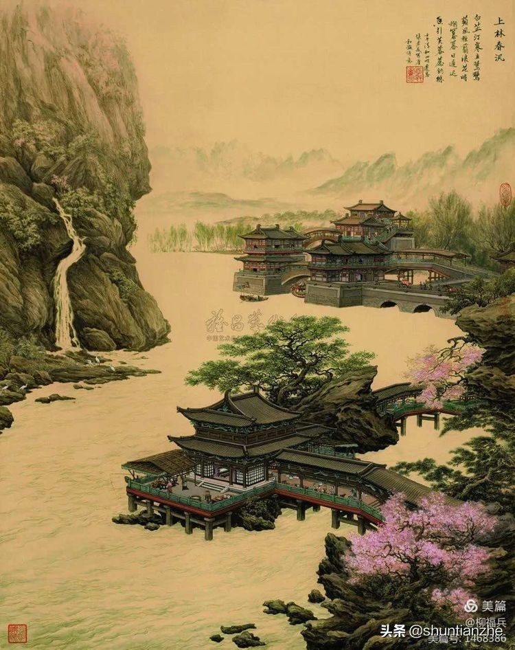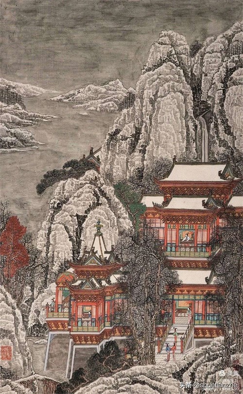 界画:中国绘画很有特色的一个门类,界画作画时使用界尺引线,故名界画。界画适于画古建筑,其它景物用工笔技法配合。通称为"工笔界画"。