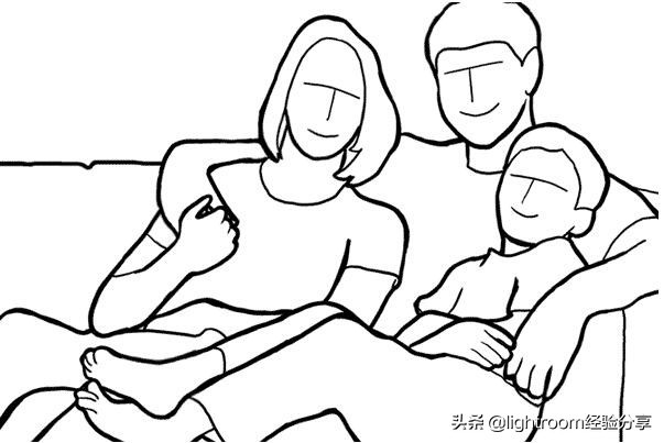 12.现在让我们拍摄全家福。最受欢迎的全家福作品是在客厅的沙发上,将沙发和房间的内部放置在取景框的边界之外,用面孔填充图片的空间。