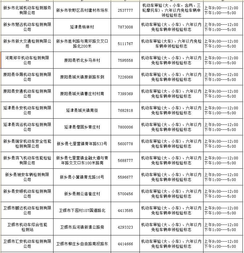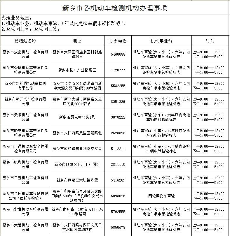 新乡市各机动车检测机构