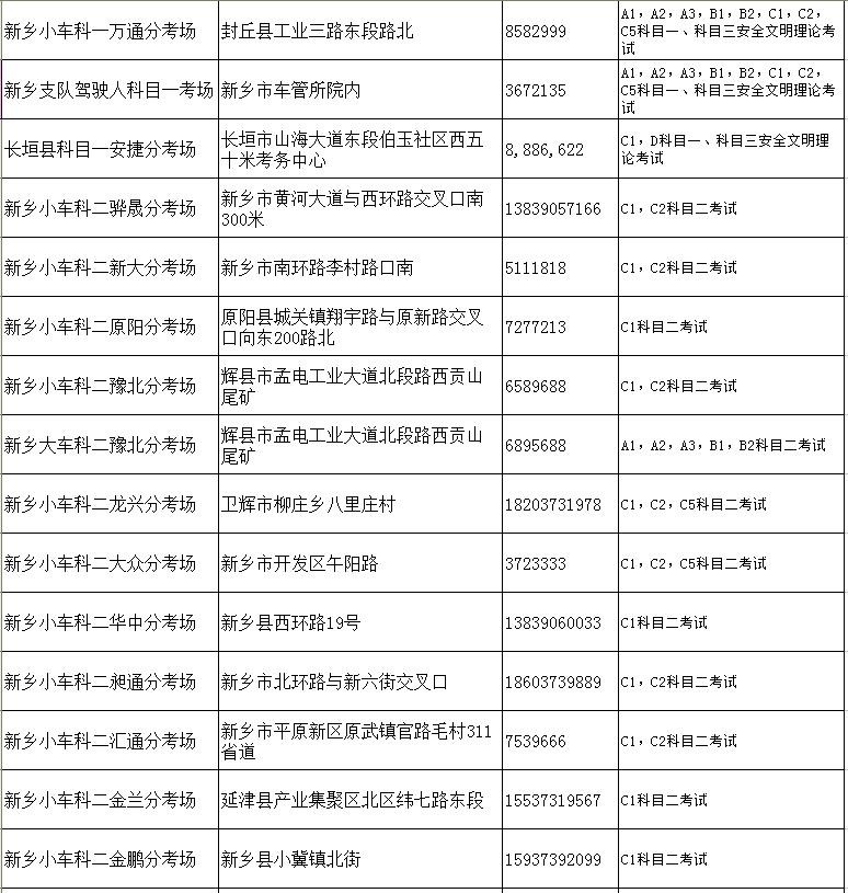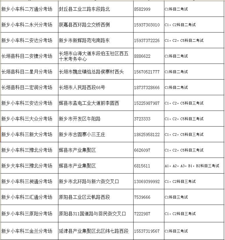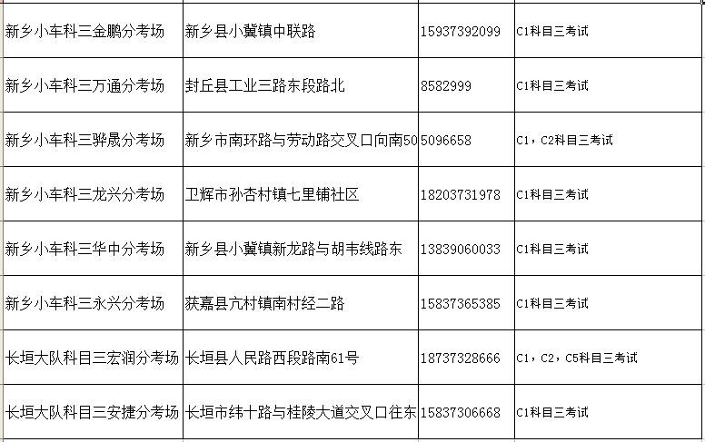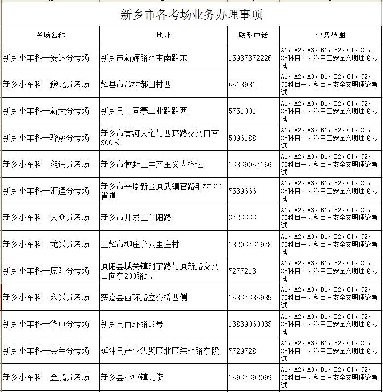 新乡市车管所及市区分所、服务站
