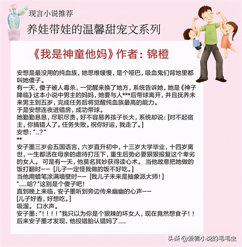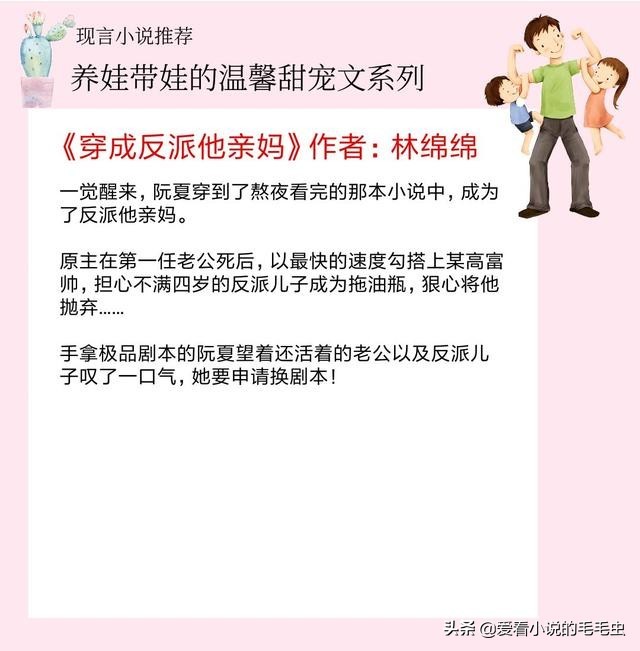 大家好,我是毛毛虫,今天推荐是5本养娃带娃的温馨甜宠文:强推《穿成反派他亲妈》,小包子很萌