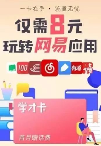 近期,中国联通联合网易推出了日租卡“学才卡”,月费低至5元。同时,用户可以选择开通3元的定向免流包,享受网易系应用免流。