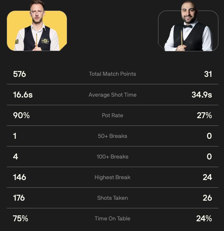 比赛第一局,特鲁姆普迅速进入比赛状态,手感火热,凭借精准远台上手,轰出了单杆破百145分高分杆拿下该局。第二局,特鲁姆普三次上手得分,以61:0再下一局,前两局瓦菲一球未进,确实很尴尬。随后,特鲁姆普完全是自己进行表演,连续轰出单杆108分、115分和146分,连续三杆破百,状态太惊人了。随着打出4杆破百,本赛季特鲁姆普单杆破百数达到了85杆,距离10万英镑额外奖金越来越近。