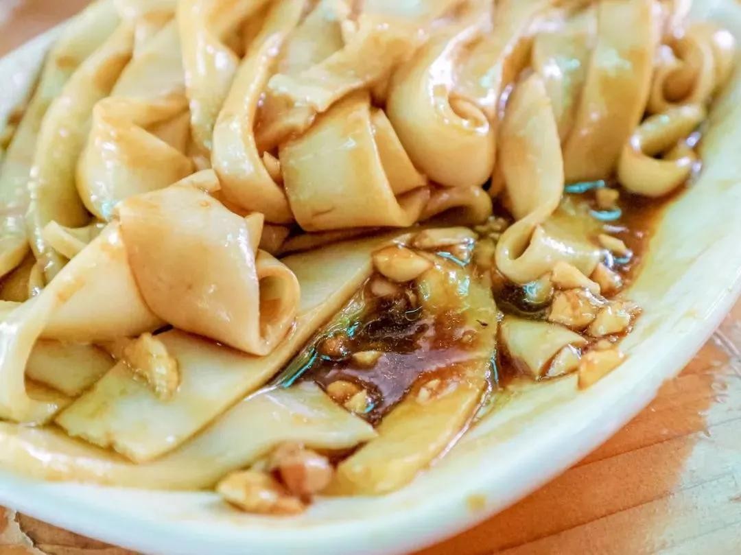 香浓的酱汁味包裹粉皮的每一个细节,咸香味十足却不掩盖粉皮的香味,满满的花生碎超级加分,味觉层次非常丰富,快来试试吧!