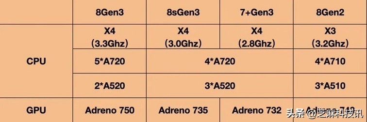 骁龙7+ Gen3可以看作是在骁龙8s Gen3再小砍一刀的产物,综合性能介于第一代骁龙8+和骁龙8s Gen3之间。