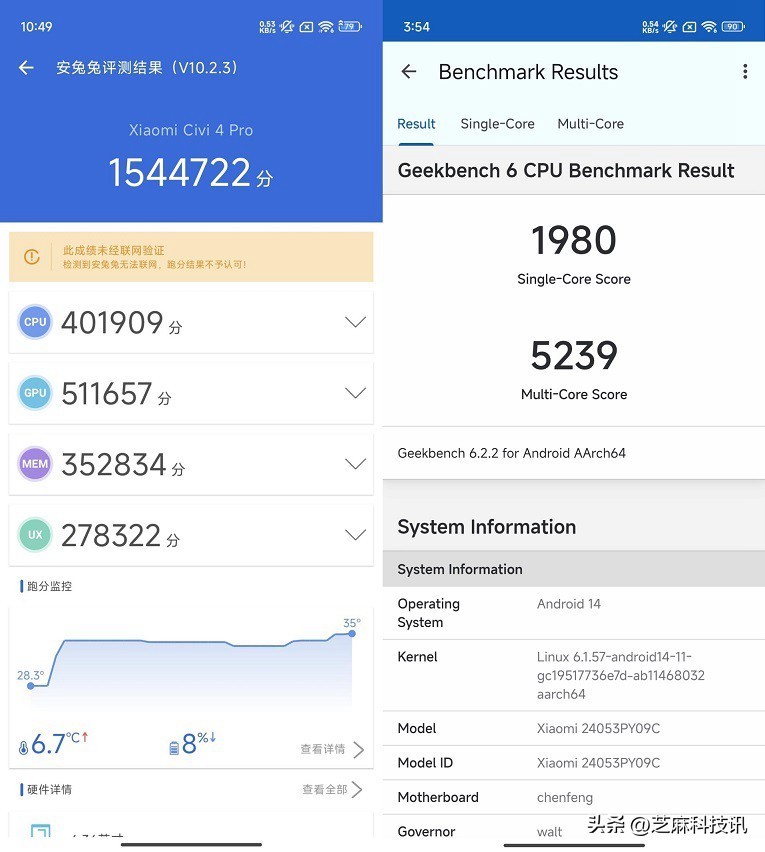 3 月 18 日,高通发布了骁龙8s Gen 3(简称第三代骁龙8s),号称「新生代旗舰」,由小米Civi 4 Pro首发,安兔兔综合跑分154万分左右。