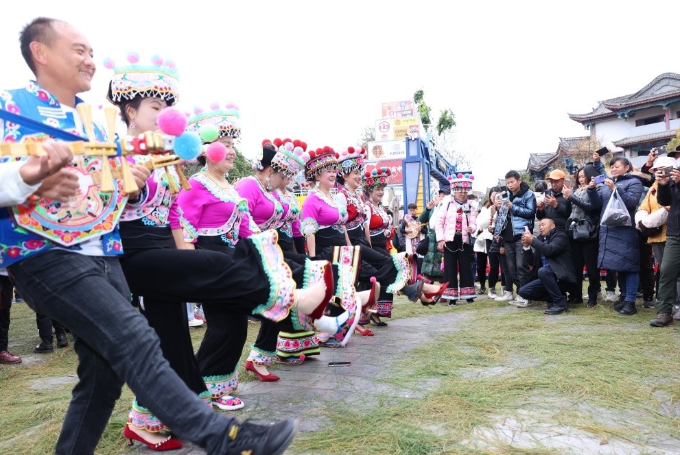 在彝人古镇毕摩广场,一场独具特色的歌舞联欢拉开了彝族年系列活动的序幕。德高望重的毕摩诵经祈福,祈愿来年风调雨顺、五谷丰登、岁岁平安。来自州民族艺术剧院、楚雄市艺术团等文艺院团的演员们,与彝族歌手联袂送上一个个极具彝族文化特色的歌舞节目和器乐表演,用歌舞表达心中最真挚的喜悦,释放彝家人最浓烈的热情,为现场观众带来了一场原汁原味、精彩纷呈的文化盛宴。