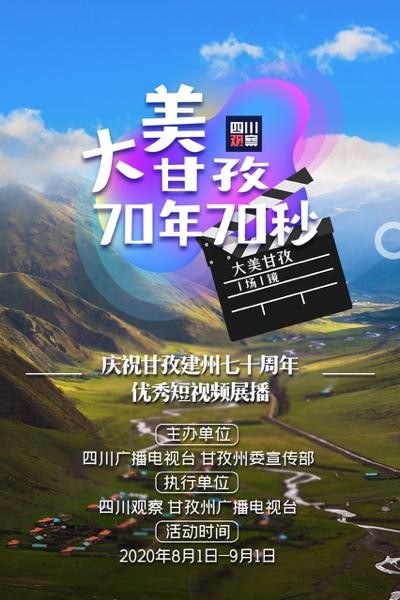 为喜迎建州七十年,四川广播电视台联合甘孜州委宣传部发起以“大美甘孜•70年70秒”为主题的优秀短视频展播活动,活动旨在全面展示甘孜州七十年来的发展变化和辉煌成就,书写甘孜新征程,向甘孜建州七十周年献礼。