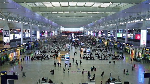 人流动线长是因为原本简单的候车室-站台的人流轨迹,变成了进站口到楼梯大厅,再到候车过道,再到候车厅,最后到站台。因为动线变长了,为火车站内设置商业区提供了便利条件。