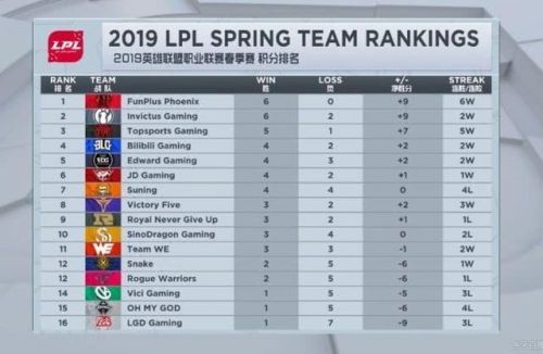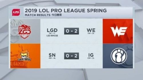 英雄联盟LPL赛区2019春季赛积分情况 iG位居联盟第二
