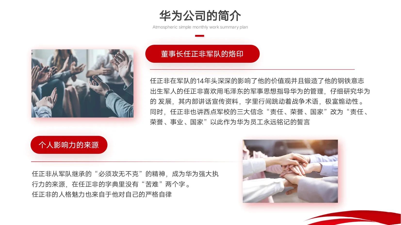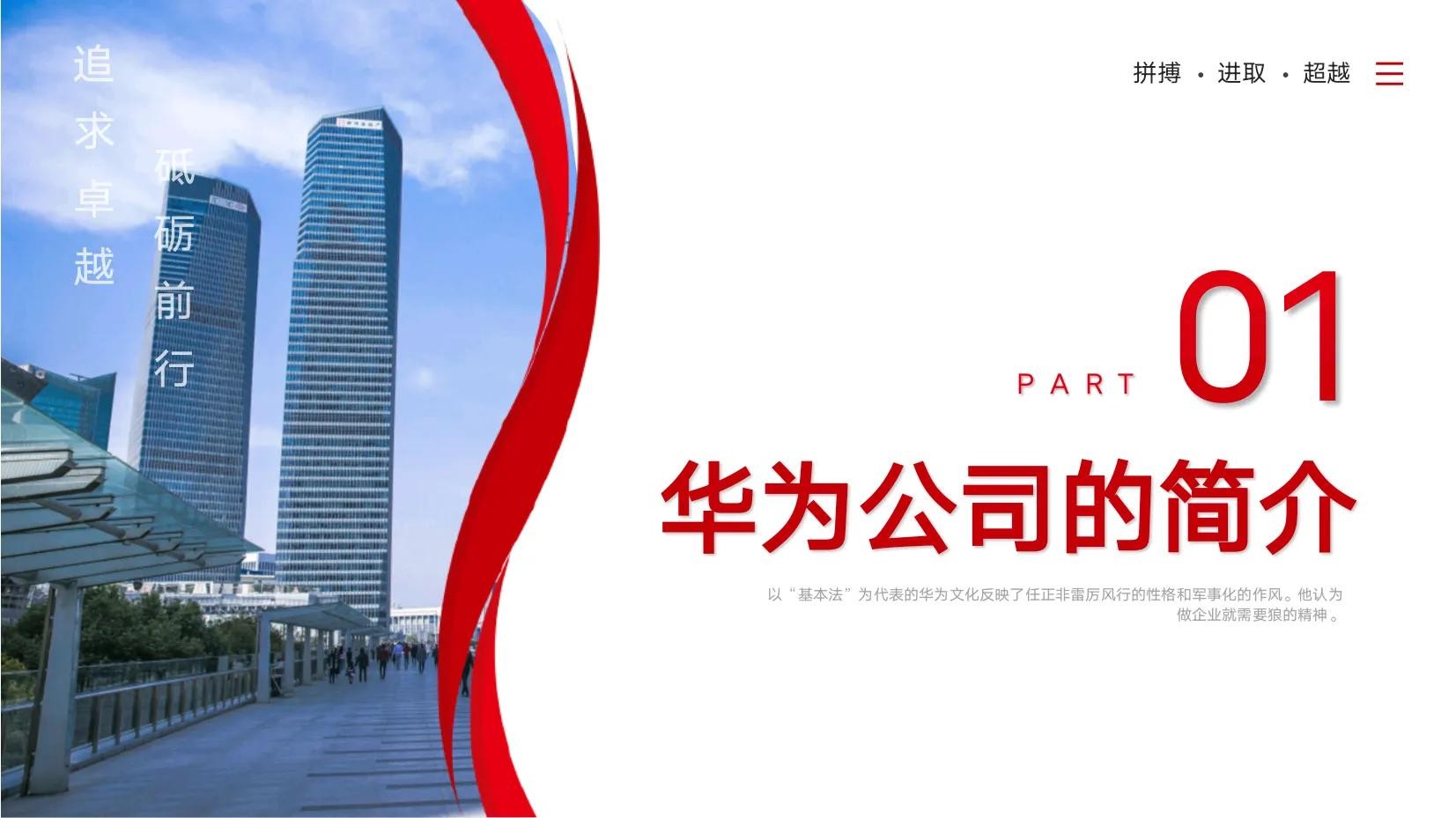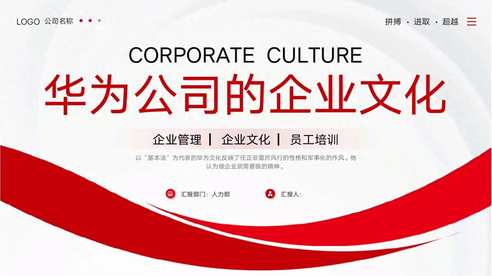 华为的企业文化独具特色,强调持续创新、客户至上和团队合作。公司倡导奋斗精神,鼓励员工不断超越自我,追求卓越。同时,华为注重员工成长,提供广阔的职业发展空间,打造和谐的工作环境。