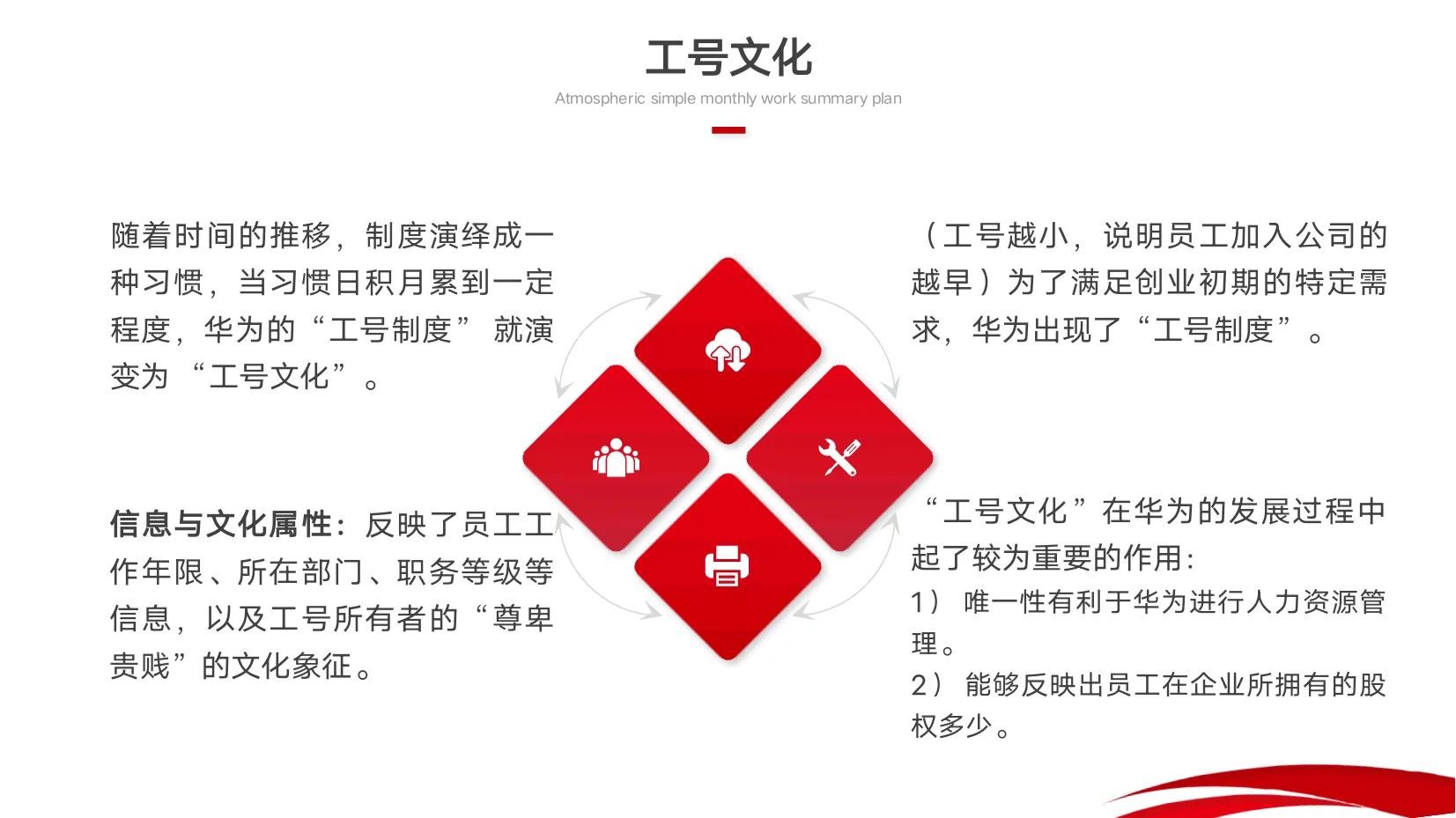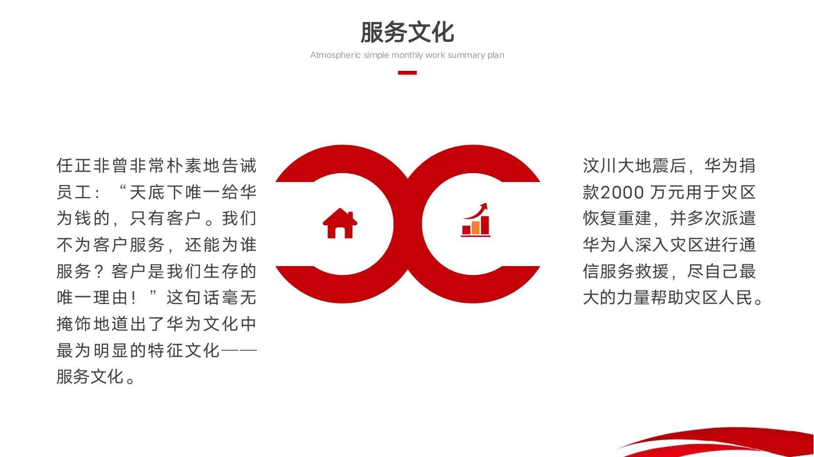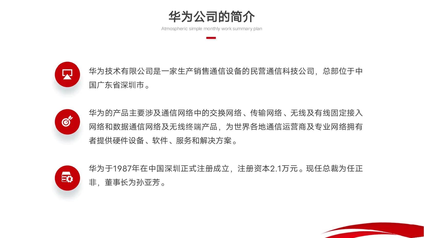 华为的企业文化独具特色,强调持续创新、客户至上和团队合作。公司倡导奋斗精神,鼓励员工不断超越自我,追求卓越。同时,华为注重员工成长,提供广阔的职业发展空间,打造和谐的工作环境。
