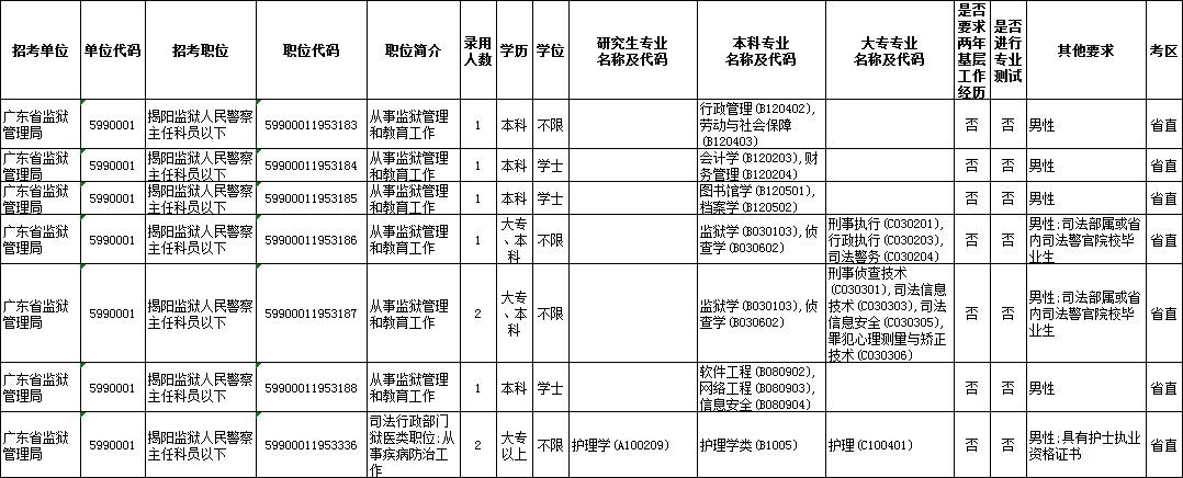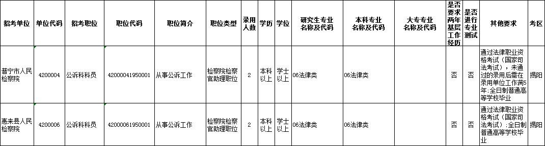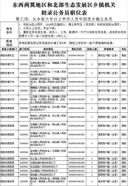揭阳市招考的职位有.....