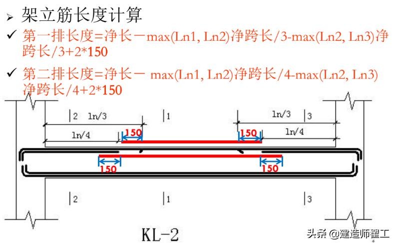 架立筋长度=净跨长度-两边负筋净长+150×2
