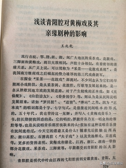 王兆乾先生在论文《浅谈青阳腔对黄梅戏及其亲缘剧种的影响》(见文化艺术出版社出版的《高腔学术讨论文集》)在文章的开篇说: