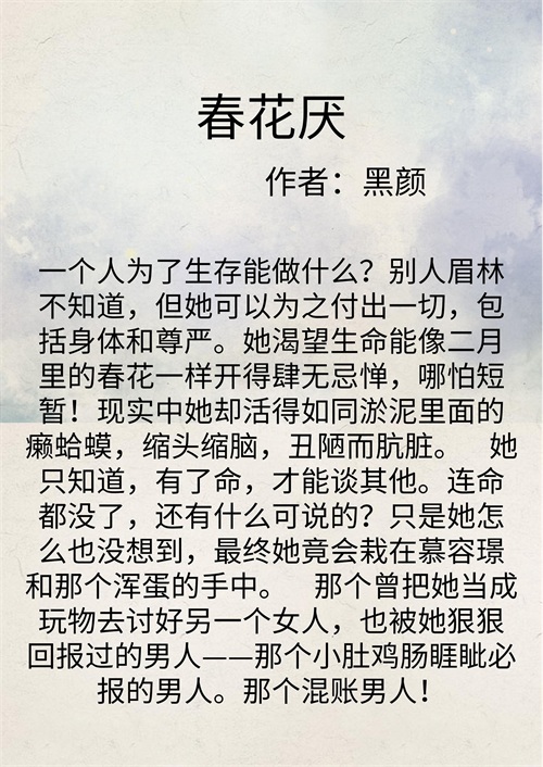 安利三本优质短篇虐文,走过路过不要错过!强推《春花厌》