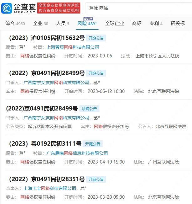 网友热衷传播,许多商家也纷纷下场蹭流量,而作为当事人的葛优显然是“躺枪者”。据媒体报道,近年来,葛优就针对“葛优躺”的相关侵权案例发起了数百起诉讼,而在这些诉讼案件的结果显示,葛优几乎全部胜诉。据企查查显示,葛优就“葛优躺”图片多次发起侵权诉讼,案由包括肖像权纠纷、网络侵权责任纠纷等,被告包括多家广告公司、文化公司、网络科技公司等。