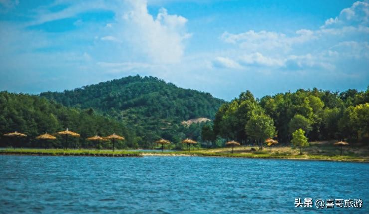 帝王湖景区,位于红安县高桥镇境内,东北纵贯倒水河,西北濒临金沙河,南迄武汉市中心六十公里,是武汉市民出游精选路线之一。该景区占地8000亩,其中水域面积约1000亩。山脉梯级分布,环状萦绕湖面的龙王山、龟山、蛇山、虾山等象形山体被水域隔开。湖泊、滩流像一颗颗璀璨夺目的珍珠,在繁茂的森林中绽放异彩。景点分布在湖四周,主要包括海啸馆、山林温泉、雕塑广场、音乐喷泉、餐厅、酒店、别墅、沙滩、养老院、索道、景区服务中心、停车场、草坪婚礼、攀岩、游船、精品垂钓等旅游娱乐设施。