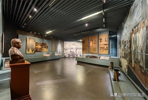这个空间,原来是博物馆基本陈列的一个总序厅。其弧形墙面上有著名画家唐小禾绘制的一幅孙中山先生的油画,目前此处暂时用于一个临时展览的序厅了。