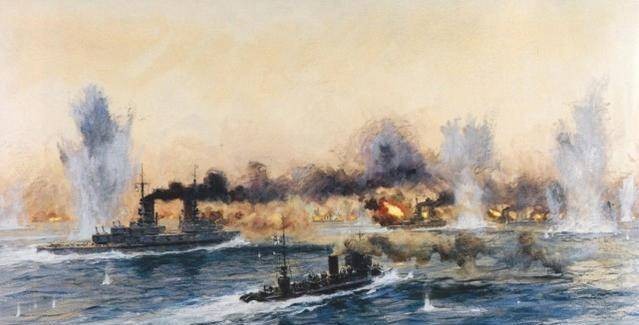 战列巡洋舰分队:吕佐夫号,德弗林格号,赛德利茨号,毛奇号,冯德坦恩号,4级5舰。