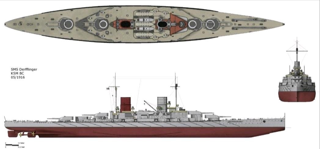 下面附上日德兰海战德军主力舰序列:(标红为战沉舰)
