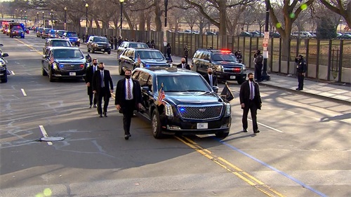 拜登乘坐的安全车装着“46”号牌,意为第46任总统。
