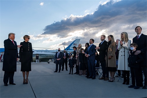 1月20日一早,特朗普偕夫人离开白宫,前往华盛顿郊外的马里兰州安德鲁斯空军基地,在一场简短的离任仪式后,乘坐“空军一号”回佛罗里达海湖庄园。