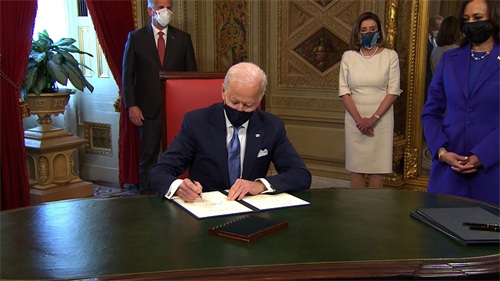 在白宫的椭圆形办公室里,拜登计划在任职的前几个小时采取17项行政措施,比其他任何总统都更快、更积极地消除前任的遗产。他的第一个行政命令,就是要求强制佩戴口罩,另一个则是重新加入《巴黎气候协定》。 此外还包括撤销前总统特朗普的一些指令,如停止在美墨边境修建隔离墙。