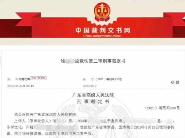 2020 年 8 月,深圳市中院一审认为,喻某洪持刀故意伤害他人,致一人死亡,其行为已构成故意伤害罪。