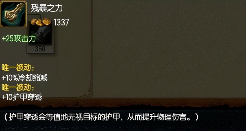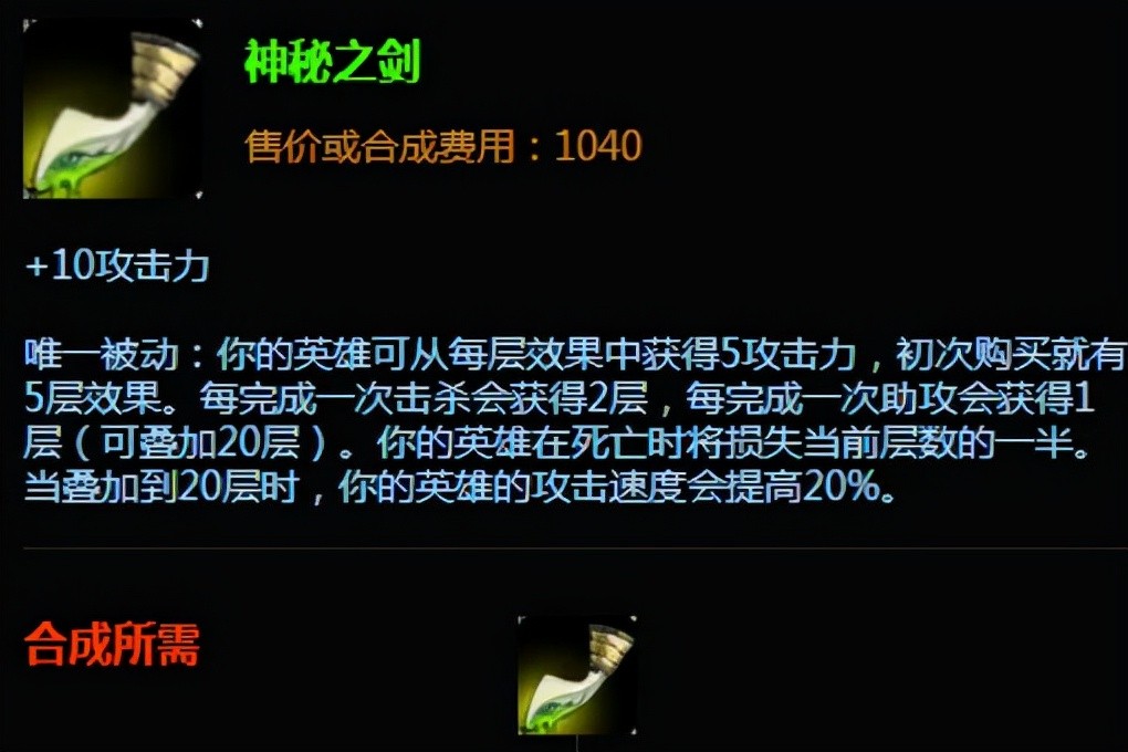 当年合成黑切的必备装备,也是AD类上单前期必出的装备,10的CD和10的穿甲,两个长剑加600多金币就能够合成,伤害爆炸不说,而且还能合成幽梦黑切等大件,性价比高的离谱。