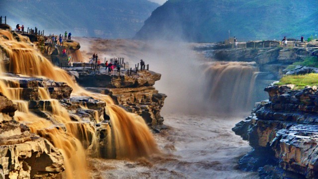 1. **黄河壶口瀑布**:中国第二大瀑布,气势磅礴,是黄河的一大奇观。