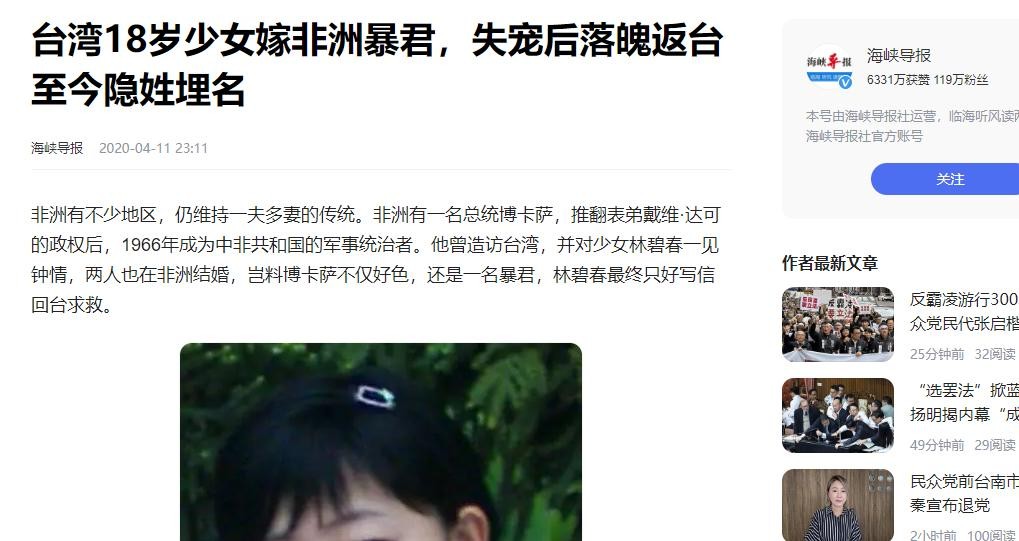参考资料:台湾18岁少女嫁非洲暴君,失宠后落魄返台至今隐姓埋名