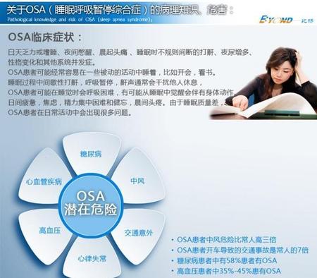 ②睡眠呼吸暂停低通气综合征是指每晚睡眠过程中呼吸暂停反复发作30次以上或睡眠呼吸暂停低通气指数(AHI)≥5次/小时并伴有嗜睡等临床症状。呼吸暂停是指睡眠过程中口鼻呼吸气流完全停止10秒以上;低通气是指睡眠过程中呼吸气流强度(幅度)较基础水平降低50%以上,并伴有血氧饱和度较基础水平下降≥4%或微觉醒。目前临床有呼吸睡眠监测检查可明确是否存在该病。因为呼吸通气和换气出现问题,故会导致人体器官缺氧,每天睡眠都会发生,长期以往人体各器官均会受到缺氧导致的损害。