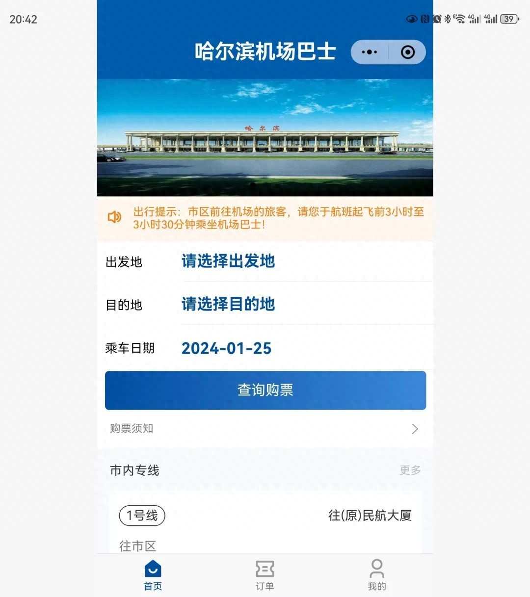 哈尔滨机场巴士可线上购票了!现场购票有调整