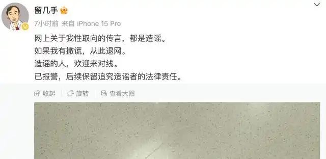 留几手报警:网上关于我性取向的传言,都是造谣