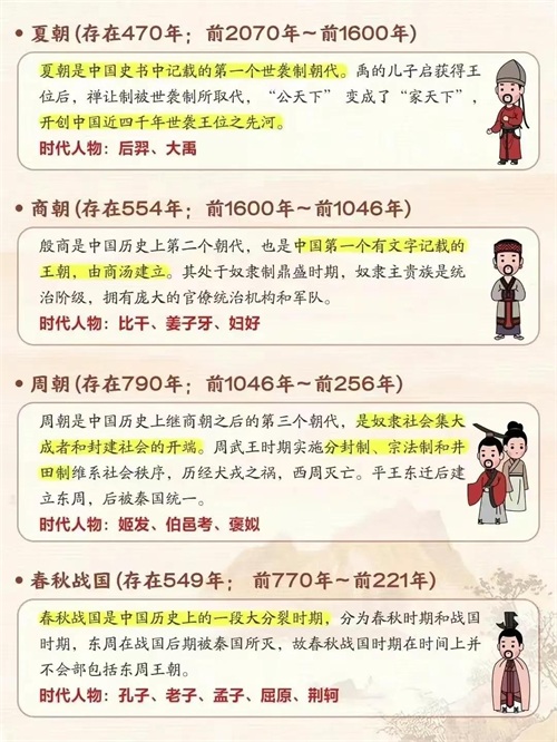 殷商是中国历史上第二个朝代,也是中国第一个有文字记载的王朝,由商汤建立。其处于奴隶制鼎盛时期,奴隶主贵族是统治阶级,拥有庞大的官僚统治机构和军队。时代人物:比干、姜子牙、妇好