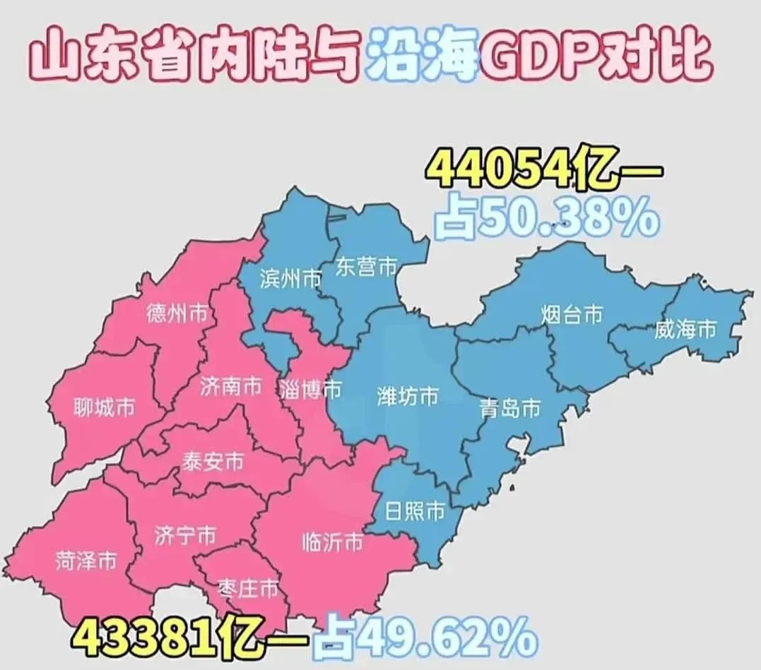 现在山东确定的济南和青岛两大都市圈,不管是济南还是青岛,都在疯狂的虹吸着自己圈内的人口和资源。省内其他城市不光要承担着给省外其他大城市输送人口和人才,还要承担着为自己省内的大哥和二哥输送人口和人才的压力。现在以济南为代表和核心的山东省内陆城市群与以青岛为代表和核心的沿海城市群的GDP基本上平分秋色。再加上济南和青岛同为国家级的都市圈的核心城市,两地在地位和资源的优先级上逐渐拉平,逐渐回到统一起跑线上。未来如何,各凭本事。