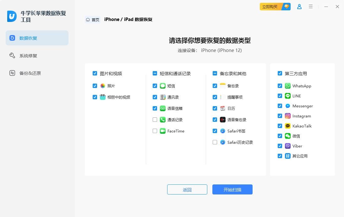 如果以上方法都无法找回丢失的备忘录,你可以考虑使用第三方数据恢复软件。如:牛学长苹果数据恢复工具,这款软件能够扫描iPhone的存储空间,找回被删除但尚未被覆盖的数据,具体操作步骤如下: