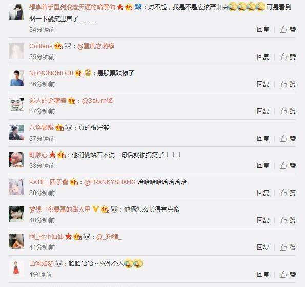 更有网友调侃道:“这是股票跌惨了吗”“他们俩站着不说一句话就很搞笑了”甚至有称“他俩怎么长得有点像?”