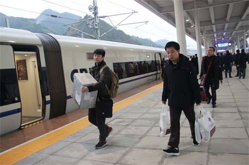 作为我省第一条地方投资控股铁路,铜玉铁路的建成、开通将极大地改善铜仁市的出行条件,加快铜仁至玉屏的同城化进程,铜仁市也将融入贵州高铁2小时经济圈,对地方的经济发展具有极大的推动作用,位于黔东北武陵山区的铜仁市将彻底迈入高铁时代。据悉,目前从铜仁直达贵阳的有3趟列车,从贵阳北到铜仁的有2趟列车,1.5小时即可到达,从铜仁到贵阳的二等座票价为147元。2019年1月5日以后,将会继续开通铜仁直达广州的列车。