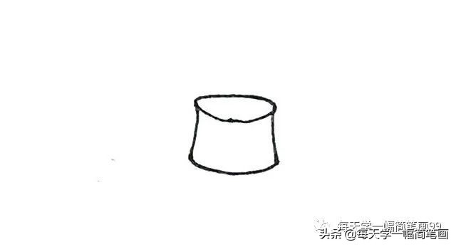 火锅简笔画步骤一:先画上一个椭圆形。