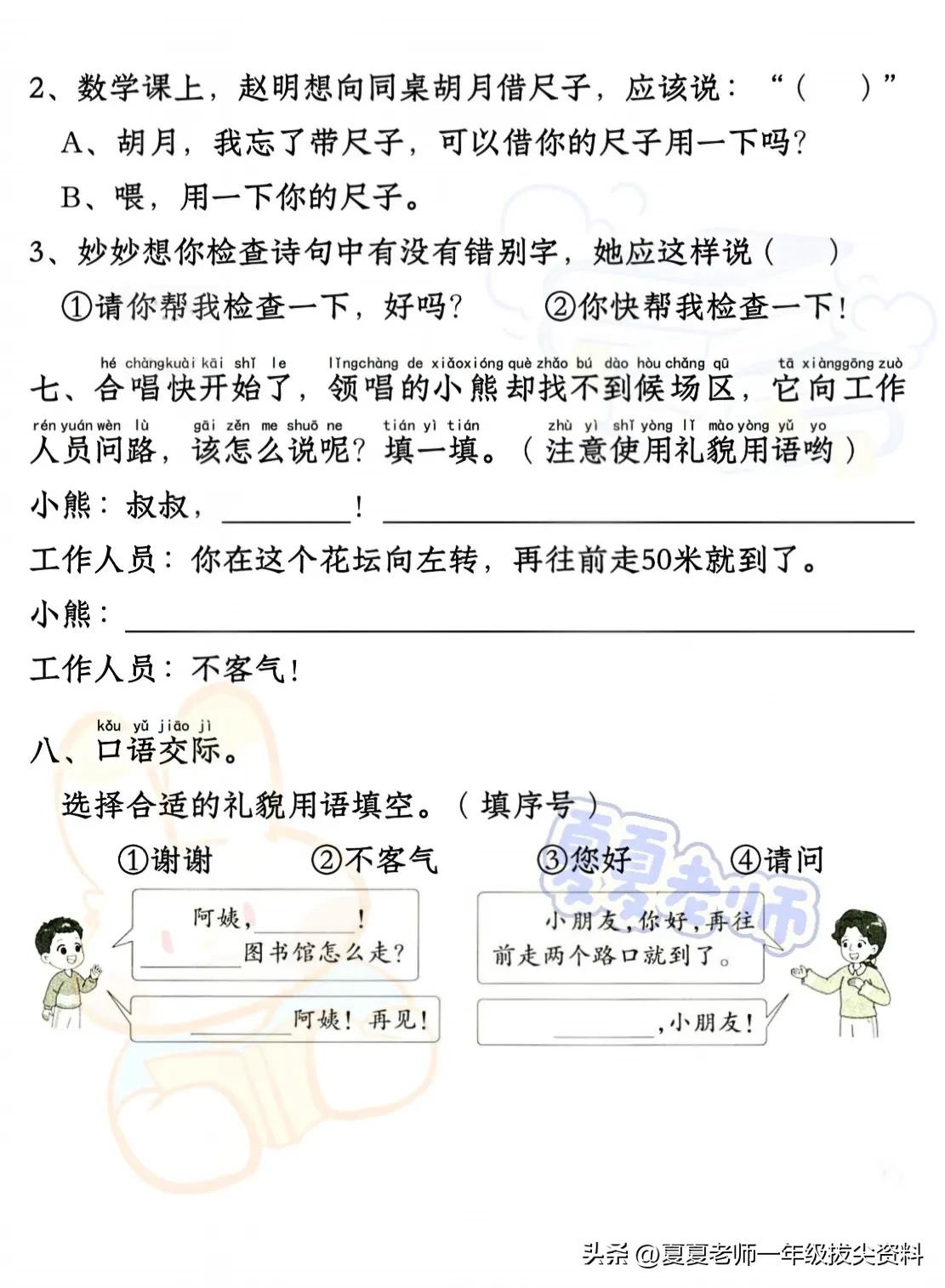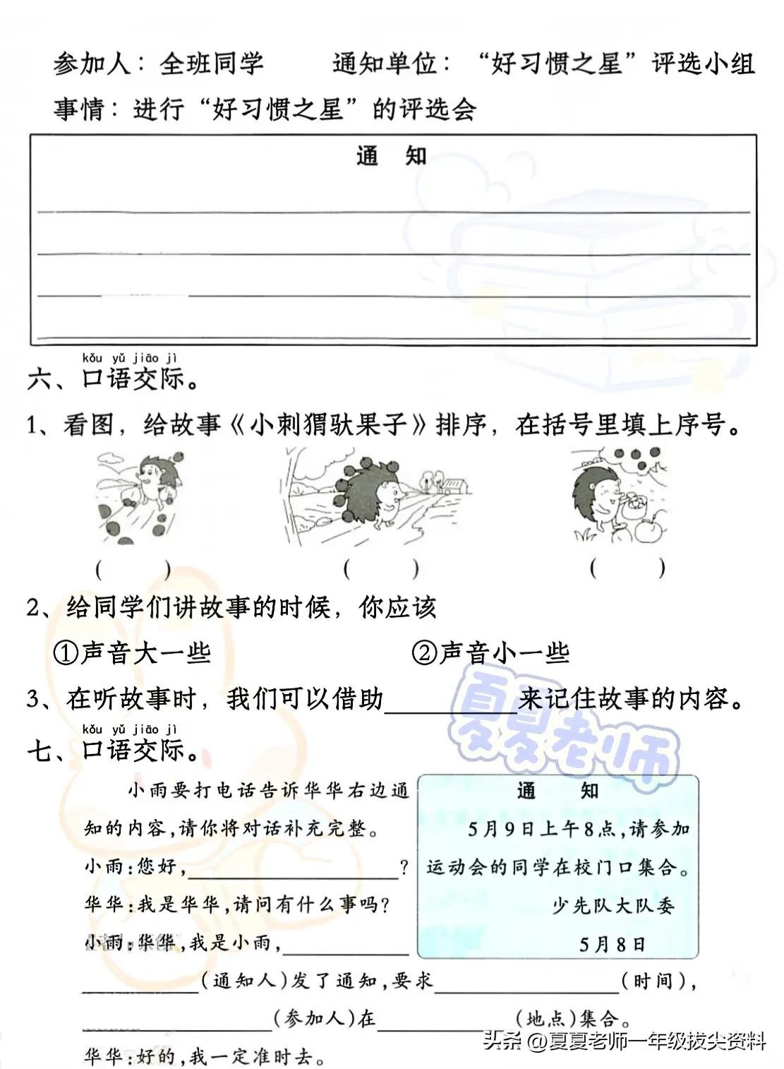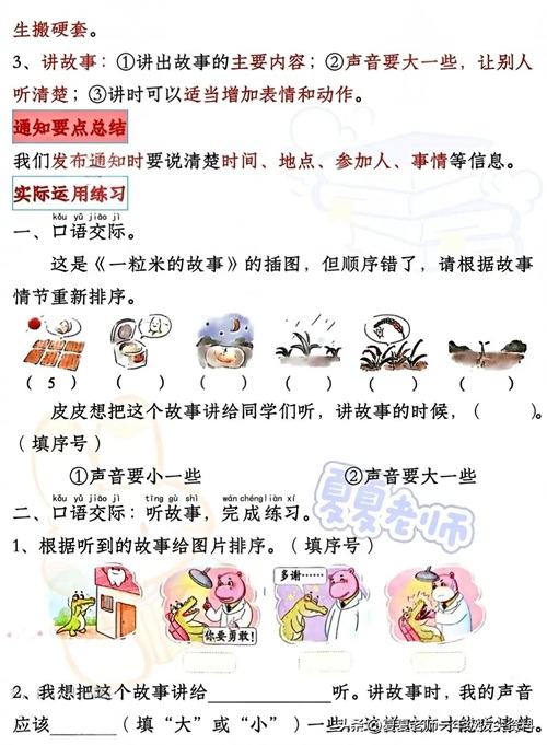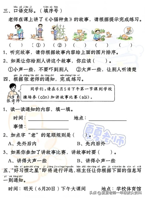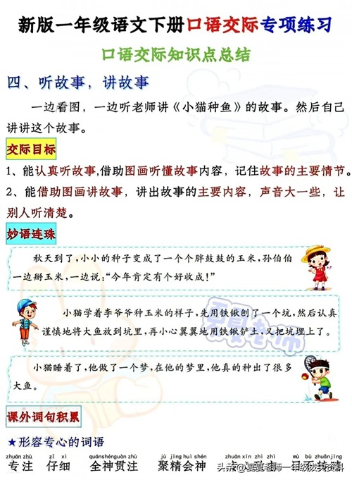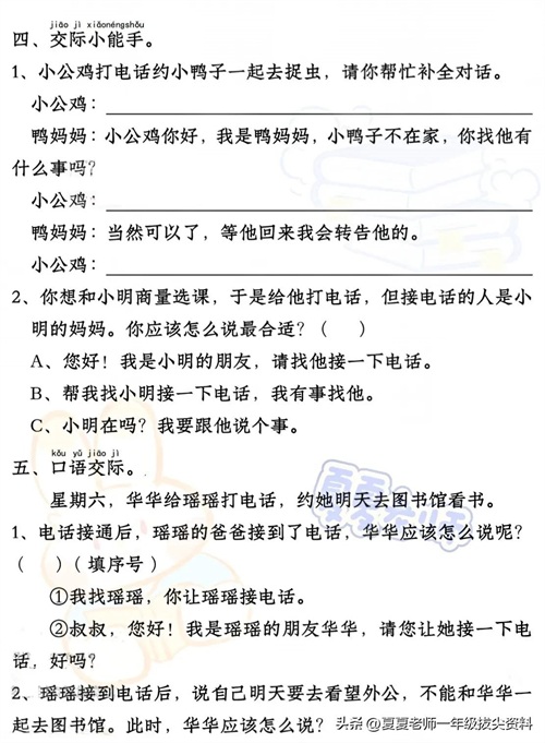 【一年级家长速看】新版一年级语文下册期中考试口语交际专项练习