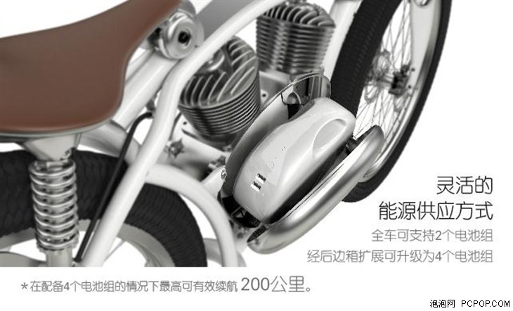 门罗新能源电动车外形采用复古的摩托车造型,车身采用UV紫外线光固化喷漆工艺,具有耐磨、耐腐蚀、耐紫外线的优点,同时也非常光滑有质感。关于动力方面,这款复古造型的摩托车采用电池驱动,采用进口18650锂电池,电池容量达到汽车级的29Ah,单组电池重量为2.8kg,每组电池模块还配备有双USB接口,可为手机、平板、智能手表等移动设备充电。这款电动摩托车可支持2个电池组,在经过拓展升级之后可以搭载4个电池组,而配备四个电池组的情况下,最高有效里程将能够达到200公里。