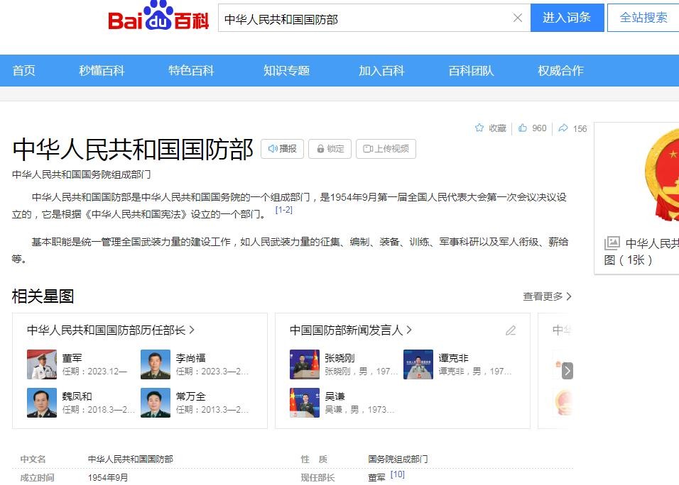 https://baike.baidu.com/item/%E4%B8%AD%E5%8D%8E%E4%BA%BA%E6%B0%91%E5%85%B1%E5%92%8C%E5%9B%BD%E5%9B%BD%E9%98%B2%E9%83%A8/3430301?fr=aladdin