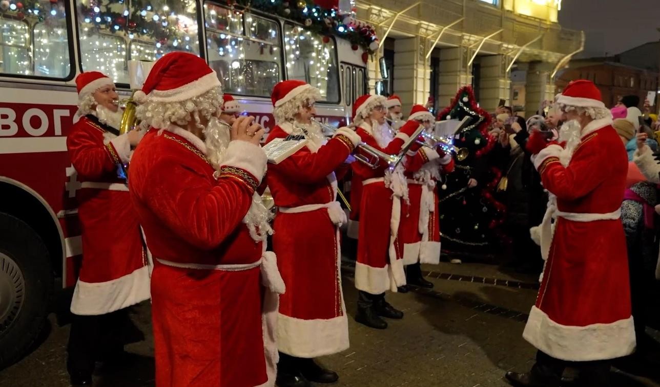 他们在特定的街道路线一站一站停靠为大家演奏乐曲并分发礼物,共同庆祝新年的到来。